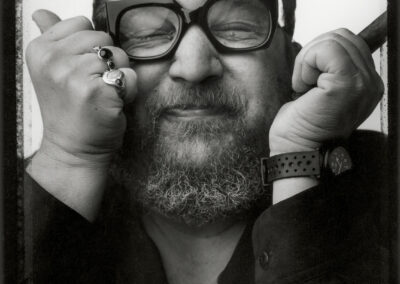 Marc Hauser was widely recognized for his striking, psychologically direct portraits of cultural icons, artists, performers, and everyday people. Working with elegant restraint, he favored simple settings and carefully shaped light, allowing expression, gesture, and presence to define the image. The result is portraiture that feels both immediate and timeless—photographs that invite viewers into a quiet but powerful encounter with the subject.